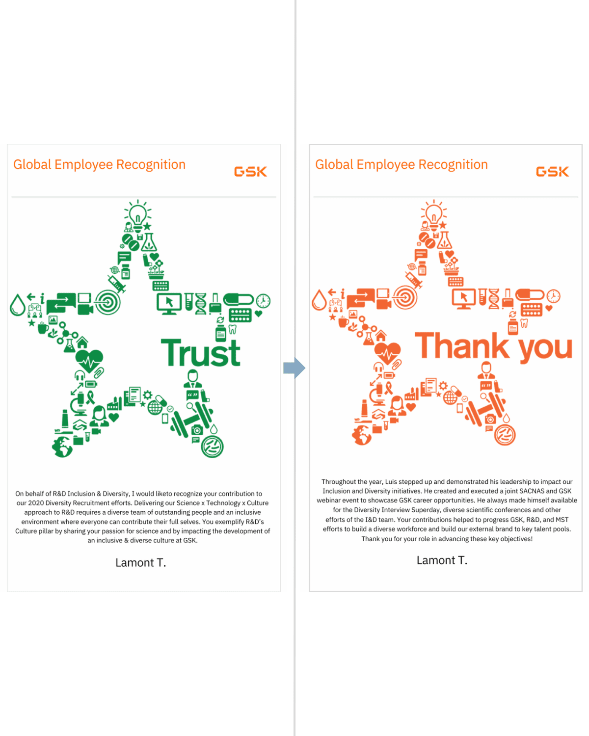 In 2020–2021, inclusive leadership meant opening doors for diverse candidates. Recruitment pipelines were strengthened through contributions to early hiring efforts, a joint SACNAS/GSK webinar, and external recruiting conferences. A mentoring program was also built into Diversity Interview Superday — pairing candidates with guidance, showcasing GSK’s culture, and supporting interviews — all helping expand diverse pipelines and elevate GSK’s DEI brand.